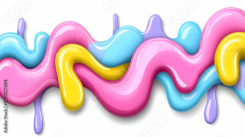 Naklejka premium Colorful candy swirls, melting drips, white background, dessert design