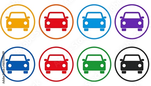 Fototapeta premium Colorful car icons in circles. Simple, multiple views