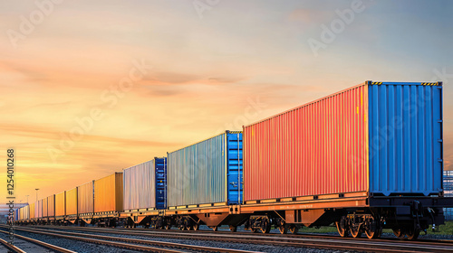 Obraz premium Colorful Cargo Train At Sunset