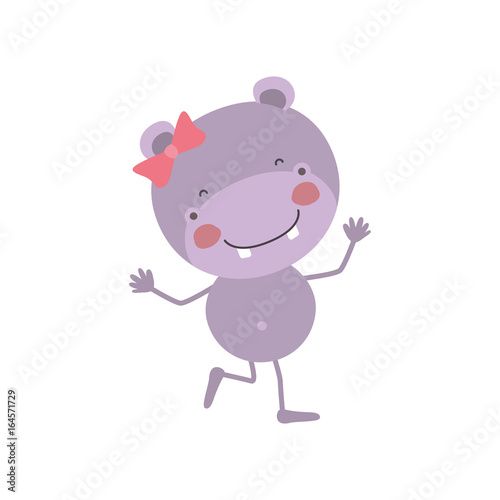 Fototapeta premium colorful caricature of cute expression female hippo in dance pose with bow...