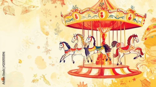 Fototapeta premium Colorful carousel with horses spinning gracefully in a whimsical amusement...