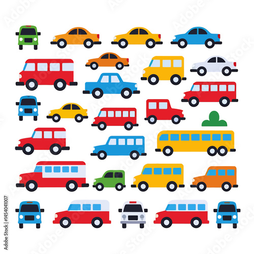 © Aeptor, Naklejka premium Colorful Cars Flat Vector Illustration For Kids Education, Transportation Concept
