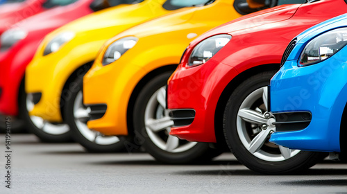 Obraz premium Colorful Cars Row In Parking Lot