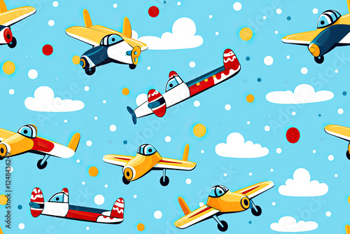 © Ayurianti, Naklejka premium Colorful Cartoon Airplanes Seamless Pattern for Kids