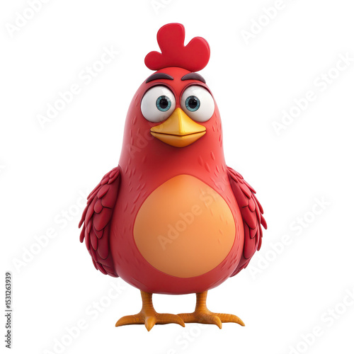 Fototapeta premium Colorful cartoon bird character stands proudly with bright eyes and a cheerful demeanor in a playful design