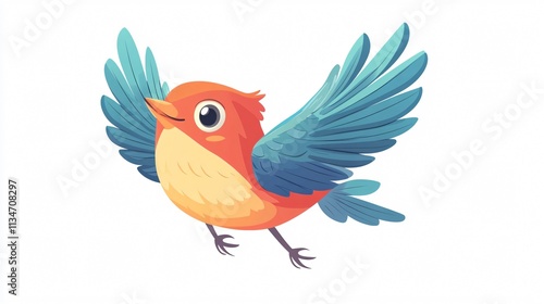 © Eleanor, Obraz premium Colorful Cartoon Bird Flying in Isolated Vector Illustration