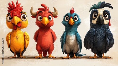 Fototapeta premium Colorful cartoon birds with unique expressions