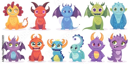 © Ева Поликарпова, Naklejka premium Colorful cartoon characters in various poses
