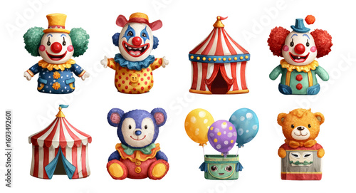 © Putra, Fototapeta premium Colorful Cartoon Circus Characters and Decorations on Transparent Background