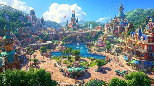 Fototapeta premium Colorful Cartoon City with High Angle View