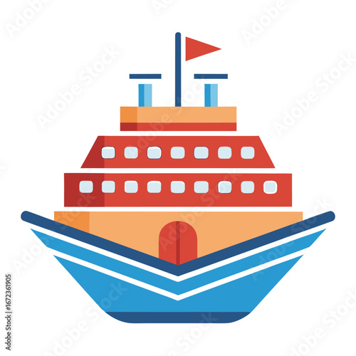 Obraz premium Colorful cartoon cruise ship sailing on blue water waves