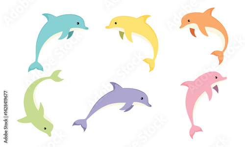 Fototapeta premium Colorful Cartoon Dolphin Vector Set