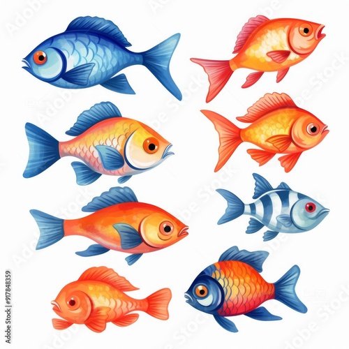 © Qstock, Naklejka premium Colorful Cartoon Fish Illustration - Vibrant Aquarium Fish Clipart for Kids and Sea Life Projects