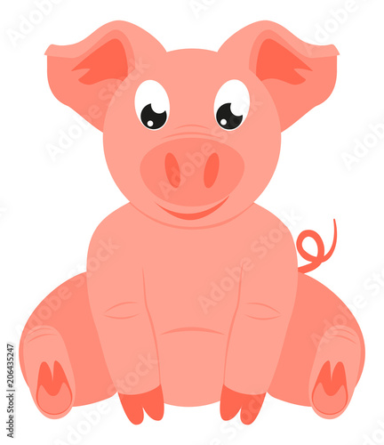 © Olga Sh, Obraz premium Colorful cartoon happy sitting pig