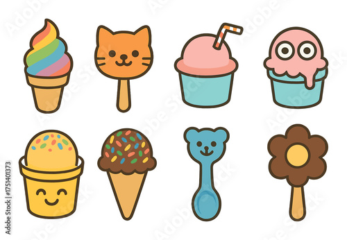Fototapeta premium Colorful cartoon ice creams: cute cones, popsicles, adorable faces, and fun designs