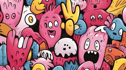Obraz premium Colorful Cartoon Monster Doodle Pattern