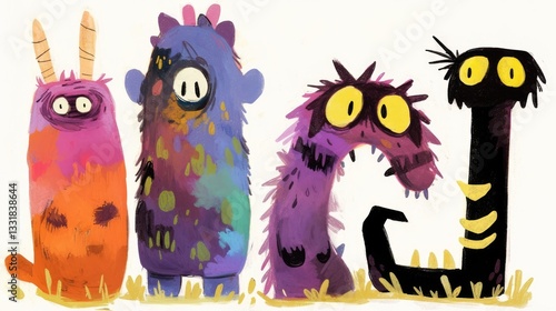 Obraz premium Colorful cartoon monsters with big eyes and teeth.