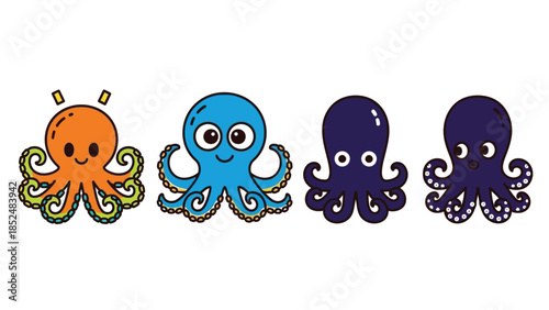 Obraz premium Colorful cartoon octopuses with smiling faces and playful tentacles