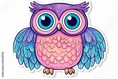 © Thana, Naklejka premium Colorful cartoon owl illustration digital art whimsical design