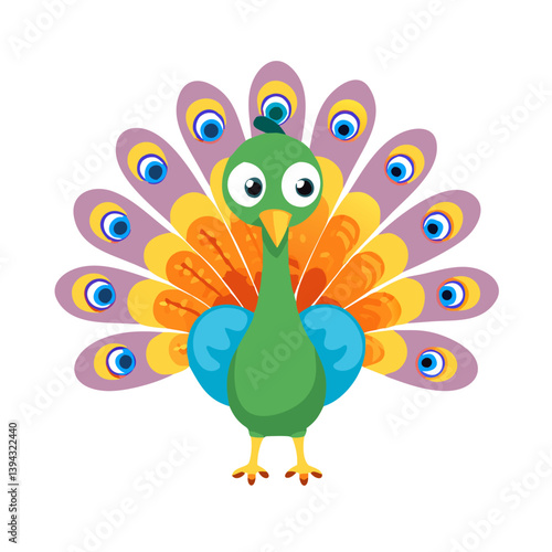 Obraz premium Colorful cartoon peacock with spread feathers