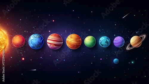 Fototapeta premium Colorful cartoon planets in space