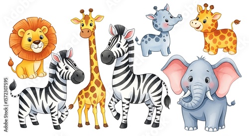 Naklejka premium Colorful Cartoon Safari Animals Illustration for Kids and Educational Materials