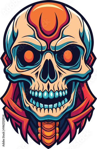© mdsohrab, Fototapeta premium Colorful Cartoon Skeleton Skull Vector Illustration with Ribcage Design for Halloween and Comic Art Skeleton Skull Vector, Halloween Cartoon Skull, Funny Skeleton Drawing, Spooky Skull Illustration