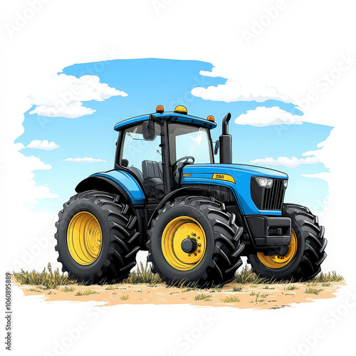 © Passakorn, Obraz premium Colorful Cartoon Tractor in a Sunny Field