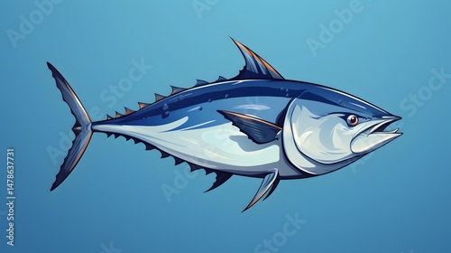 © Zoni, Naklejka premium Colorful Cartoon Vector Background of Tropical Tuna Fish Animal for Design Projects
