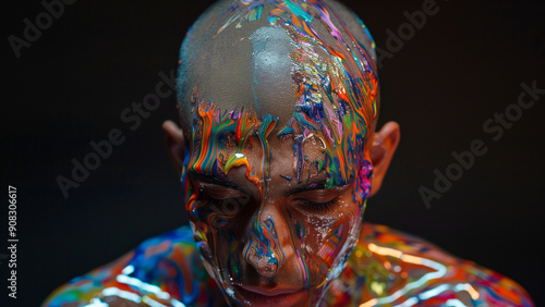 © 대연 김, Naklejka premium Colorful Cascade: An Arab Man’s Portrait