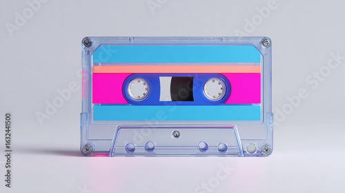 Fototapeta premium Colorful cassette tape displayed against a neutral background showcasing...