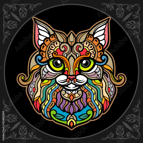© REYYARTS, Fototapeta premium Colorful cat head mandala arts isolated on black background
