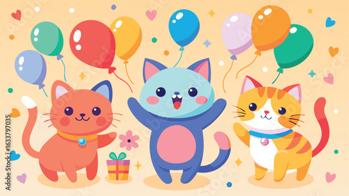 © Saju, Naklejka premium Colorful Cat Vector Illustration for National Cat Day