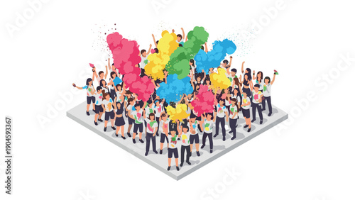 Obraz premium Colorful celebration with diverse group and vibrant paint splashes in isometric style