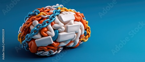 © Arthur Constantine, Naklejka premium Colorful Chains and Brain Concept on Blue Background