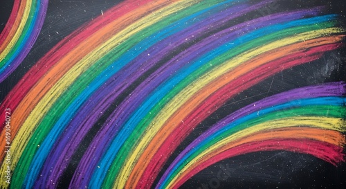 © Dyahpuji, Fototapeta premium Colorful chalk rainbow art on black background.