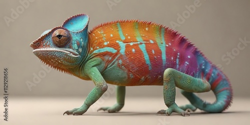 Fototapeta premium Colorful chameleon against a neutral background, , color, colorful
