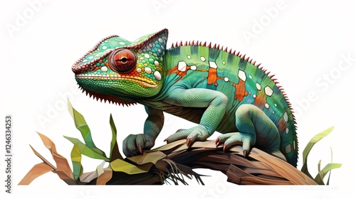 © Ab, Fototapeta premium Colorful Chameleon Isolated on White Background for Wildlife Concepts