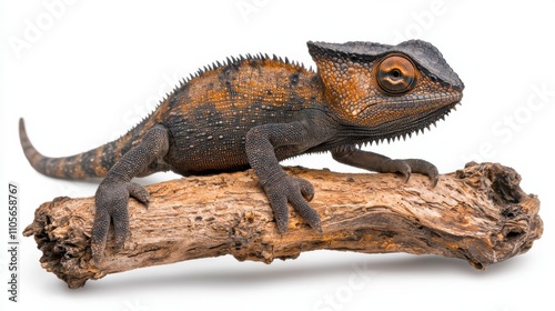 © ADD PHOTO, Obraz premium Colorful Chameleon Lizard Perched on Wooden Branch in Tropical Forest
