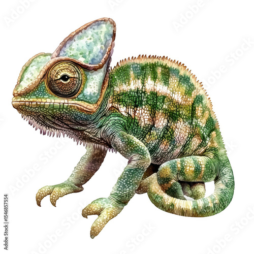Obraz premium Colorful chameleon resting on a branch, surrounded by lush greenery in a...