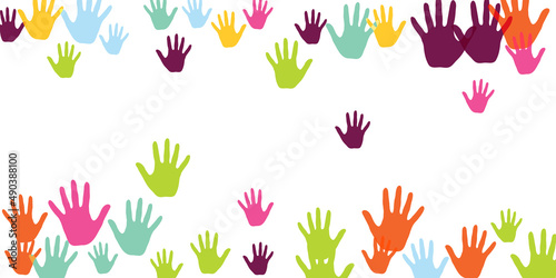 Fototapeta premium Colorful children handprints art therapy concept background design.