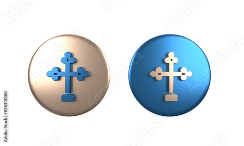 © Kostiantyn, Fototapeta premium Colorful Christian cross icon isolated on white background. Church cross. Circle button. 3D render illustration