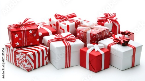 © MyStockz, Obraz premium Colorful Christmas Gifts with Red and White Wrapping Decorations