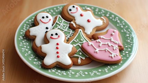 Obraz premium Colorful Christmas Gingerbread Cookies on Festive Plate