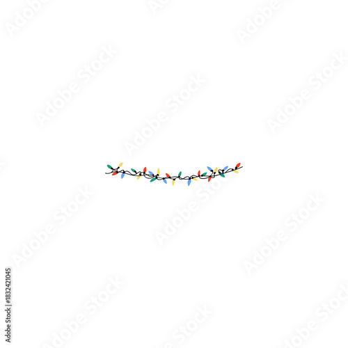 © MD Rubel, Fototapeta premium Colorful Christmas String Lights on White Background
