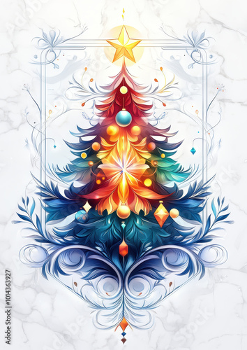 © PrusarooYakk, Obraz premium Colorful Christmas tree design, white isolate background