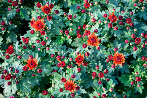 Fototapeta premium Colorful Chrysanthemum flowers on top view pattern in the garden