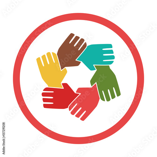 © Gstudio, Obraz premium colorful circular frame with silhouette hands teamwork vector illustration
