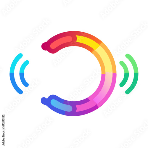 © Md, Fototapeta premium Colorful circular loading bar progress icon - Modern flat illustration of a multicolored circular progress bar with gradient segments, symbolizing loading, synchronization, or data processing.