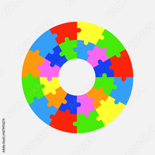 © curadioactivo, Fototapeta premium Colorful circular puzzle frame. Vector isolated on white background.